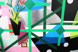 非常榮幸能獲邀參與台灣FB總部(FB台灣台北辦公室)的創作計劃,FB在全球各地有個各種形態的辦公室,關注與在地藝術家的創作作為聯結的可能。歷時八天的現地製作,主題與台灣在地建築特色鐵窗花連結,來自我在台北駐村期間所蒐集的實景窗花圖案,延續在城市中的老台北記憶,拼湊台北舊時代的風景。7米的牆面圖案,為老屋空間改造的店家窗花,菱格紋左右對稱的窗花美感,是從外觀內的窗戶視角,將窗裡的日常景物化為幾何圖案,層層堆疊情感的厚度與層次,並融入自然景觀推移的想像空間 ; 5米牆面圖案,為都更下台北老舊市場裡的窗花一景,是從內觀外的窗戶視角,拼貼的色彩與圖案重複,呈現記憶疊影,帶有時代感的紀錄,喚起屬於台灣人的台式鄉愁。